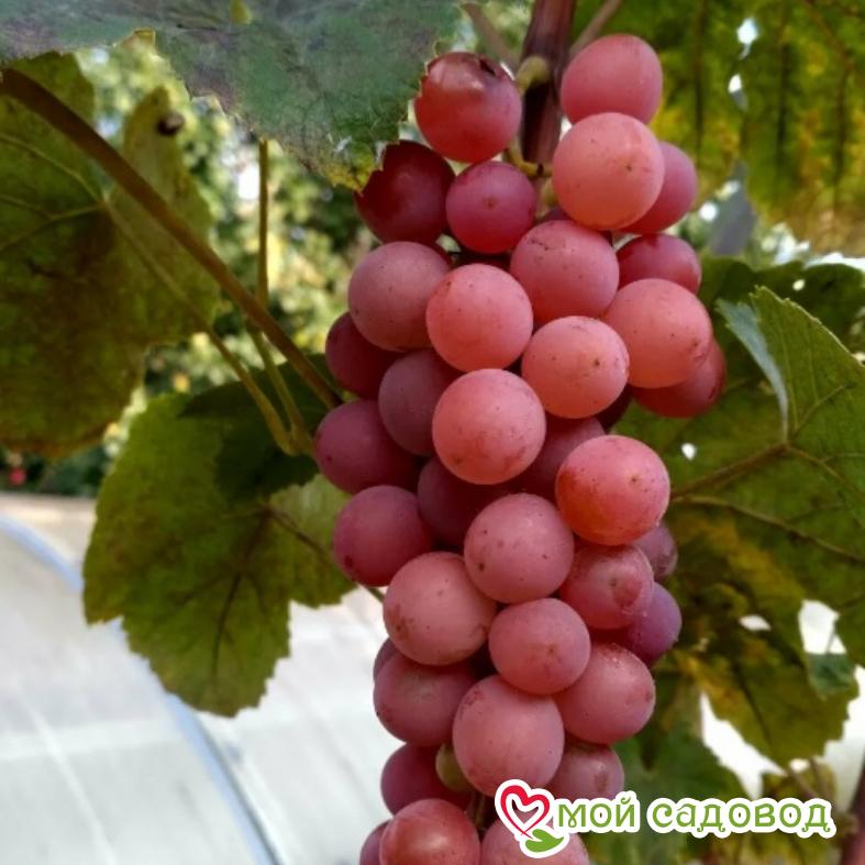 Это столово-технический сорт, американский гибрид Изабеллы. Переносит морозы до -30°С, не восприимчив к серой гнили. Отлично подходит для укрытия арок и навесов. Гроздь небольшая, ягоды розовые с приятным вкусом, применяются в виноделии. Кусты. Среднего размера, сильно загущенные. На 80% состоят из плодоносящих побегов. Листья крупные, сильно опушенные, рассечены на 3 или 5 лопастей. Цветки обоеполые. Грозди. Рыхлые, имеют несколько ветвей. Небольшого размера, цилиндрической формы. Средний вес – 500 г. Плоды. Округлые, красные, с розово-фиолетовым оттенком. Мякоть со слизистой консистенцией, сочная, с характерным земляничным ароматом. Вес – до 4 г. Кожица плотная, покрыта восковым налётом. Диаметр ягоды – 15 мм. Магазин Мой Садовод, рекомендации по уходу Уход за виноградом сводится к регулярным поливам в сухую погоду, подкормкам и формированию куста. Для подкормки используют минеральные и органические удобрения (перепревший навоз, компост). Ранней весной кусты виноград поливают полным минеральным удобрением, растворенным в воде, перед цветением такую подкормку повторяют. Перед созреванием вносят фосфорно-калийные удобрения, а после сбора урожая проводят подкормку калием для повышения зимостойкости растений. Кроме того для лучшего вызревания лозы рекомендуется удаление пасынков и прищипывание верхушек в начале сентября. Формирование куста Винограда. Для формирования виноградных кустов необходимо установить надежную опору. Самая простая представляет собой два столба с несколькими рядами проволоки между ними. По мере роста побеги подвязывают к проволоке, задавая им нужное направление. Формирование куста винограда начинают с первого года, оставляя не более двух здоровых побегов у основания, остальные выламывают. На второй год на кусте оставляют по три почки на каждом побеге, на третий год на каждом плече оставляют 2-3 сильных побега, остальные удаляют. Пожалуйста, помните, что транспортировка и пересадка — стресс для растения. Перед высадкой в открытый грунт обработайте корневую систему стимулятором роста. С заботой о растениях, Мой Садовод. В нашем интернет-магазине вы сможете купить Столовый сорт винограда Так же возможно вас заинтересуют Виноград Румба и Виноград Лидия Розовая изабелла